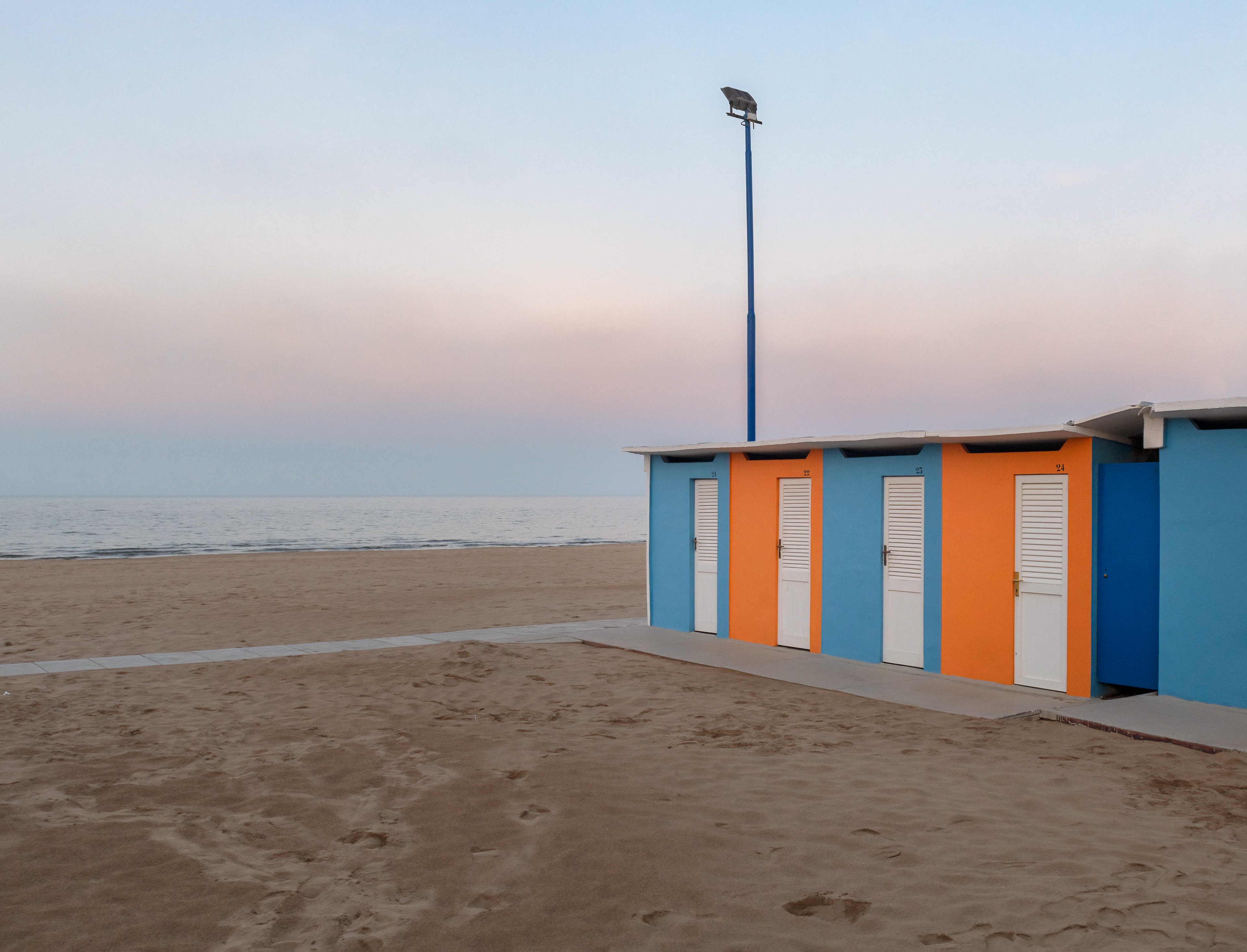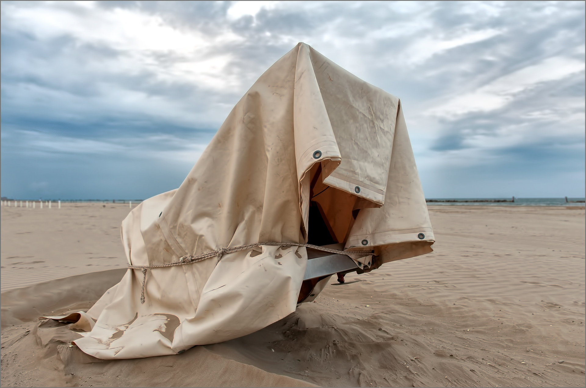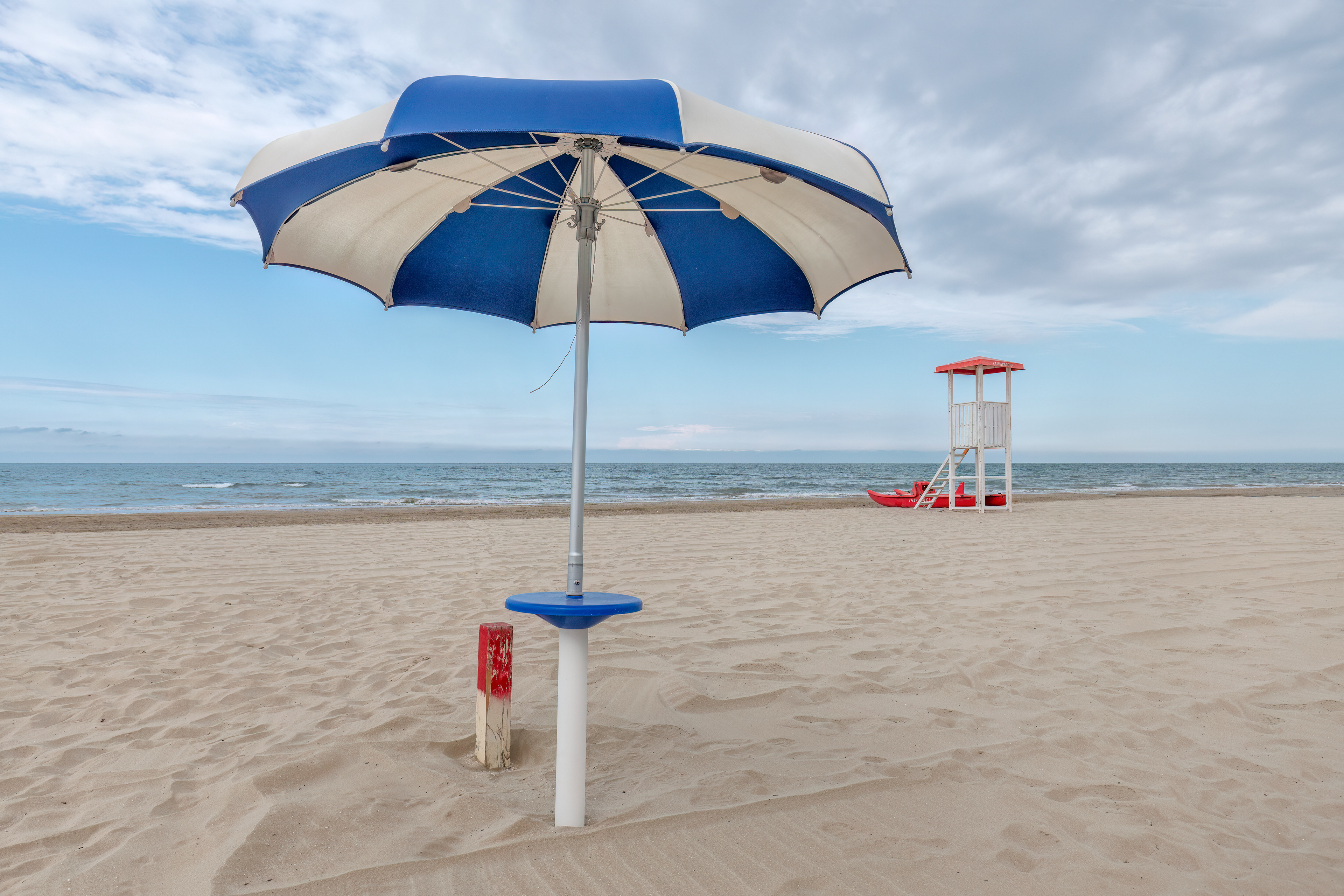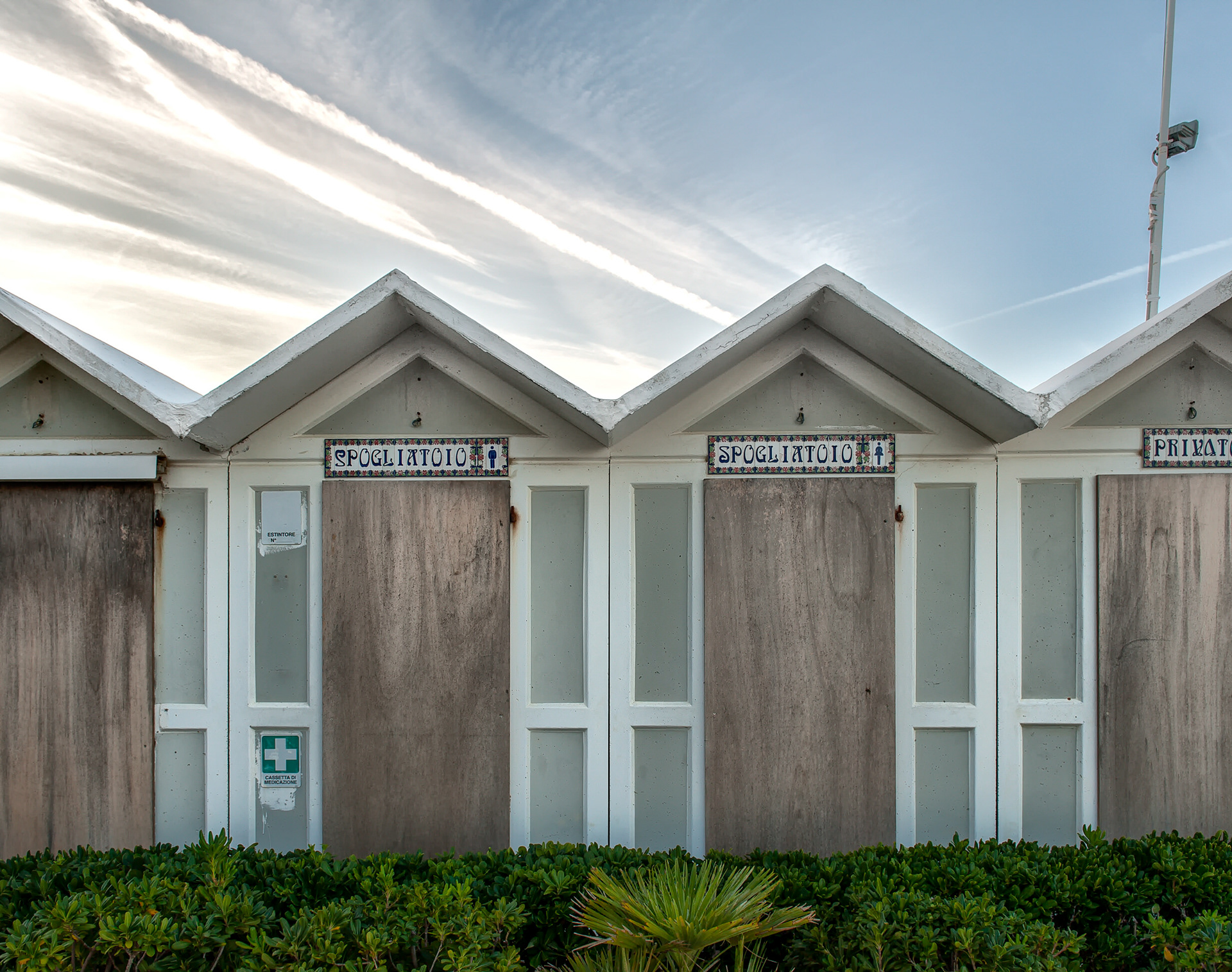 Im September endet die Saison an der italienischen Adria. Die Touristen sind wieder weg. Die Badehütten, die leeren Hotels und die verwaisten Ständer für die Sonnenschirme bleiben. Sie wirken jetzt wie Kulissen für das Theaterstück mit den Touristen, das jedes Jahr im Sommer von Neuem aufgeführt wird. Eigentlich sind auch Strand und Meer nur Rahmen für diese Aufführung.