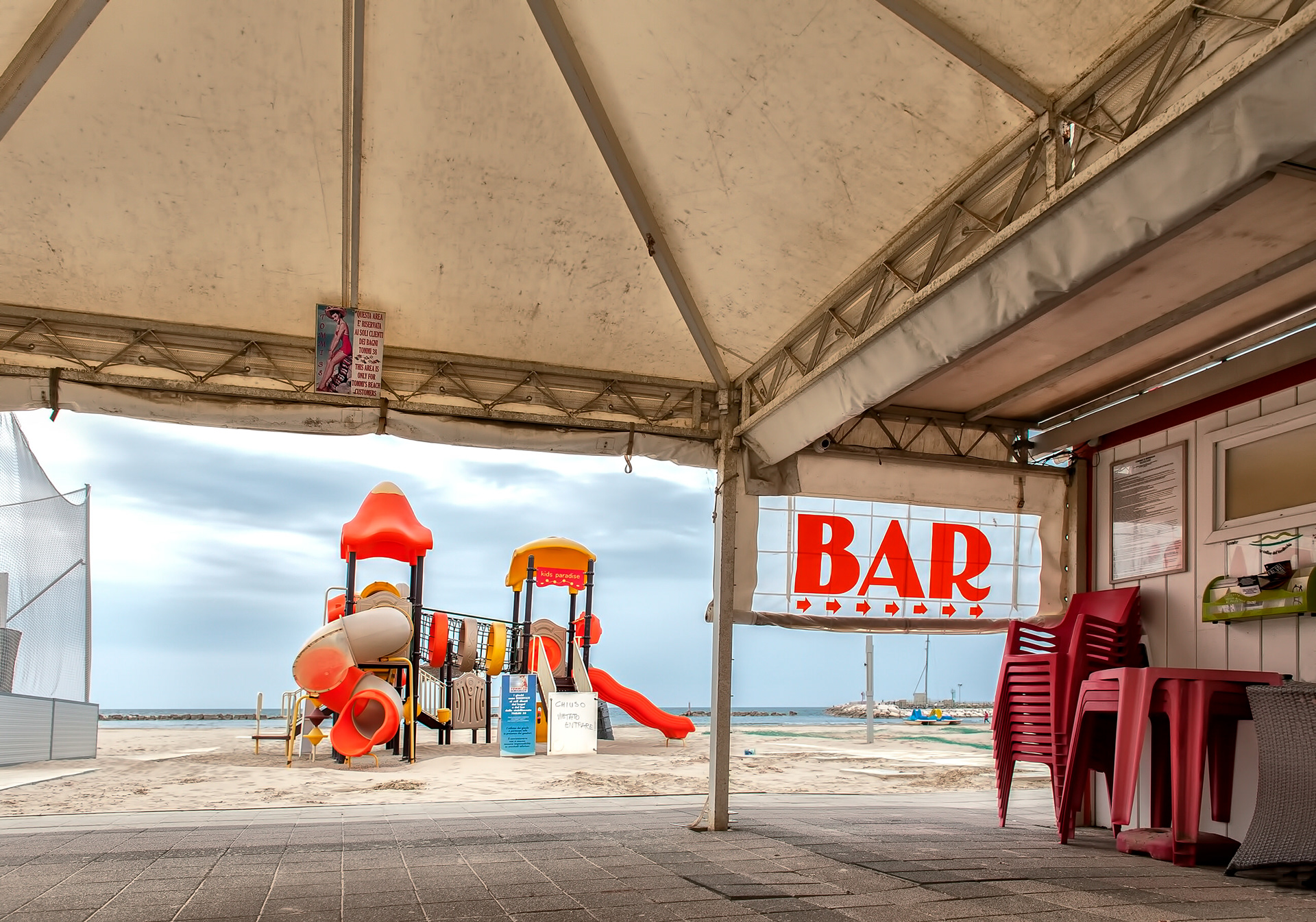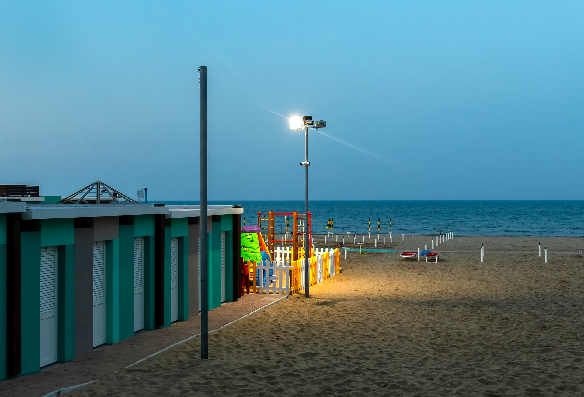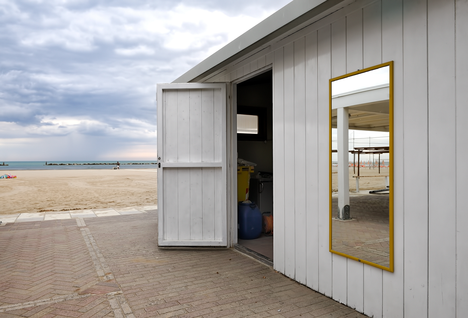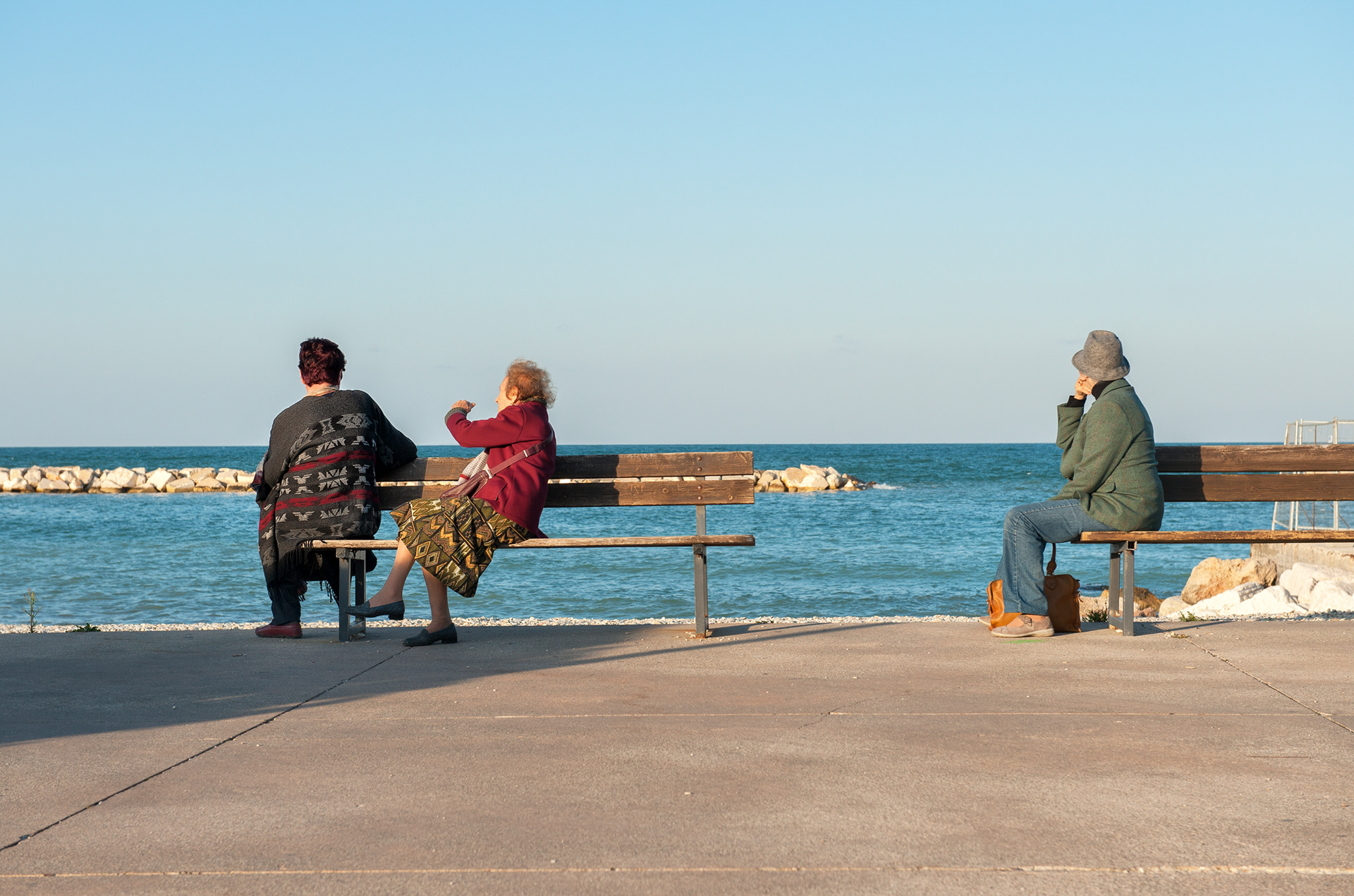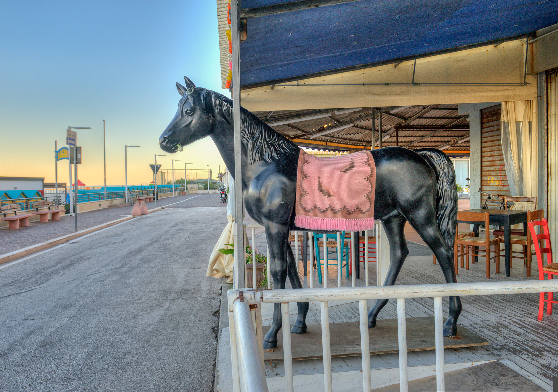 Im September endet die Saison an der italienischen Adria. Die Touristen sind wieder weg. Die Badehütten, die leeren Hotels und die verwaisten Ständer für die Sonnenschirme bleiben. Sie wirken jetzt wie Kulissen für das Theaterstück mit den Touristen, das jedes Jahr im Sommer von Neuem aufgeführt wird. Eigentlich sind auch Strand und Meer nur Rahmen für diese Aufführung.